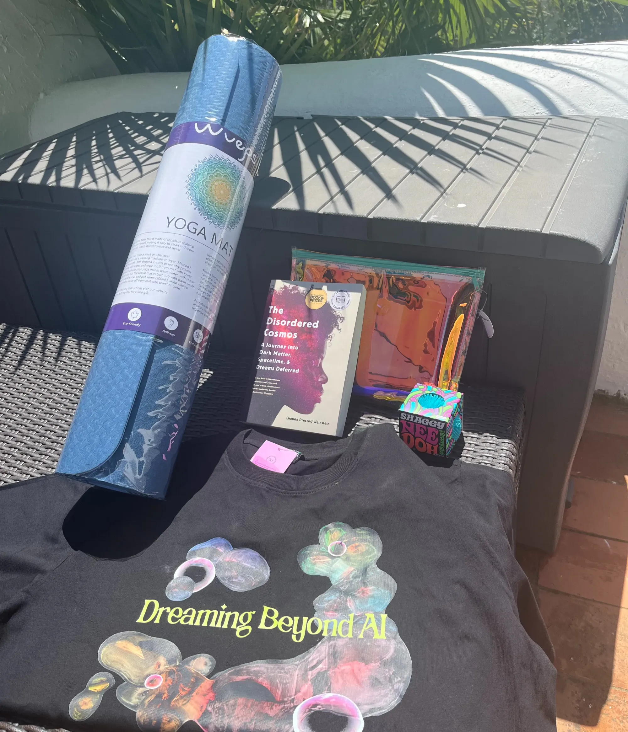 For example, for the in-person time of the residency, each residents, mentors and team member received a curated gift bag including a book, fidget toy, notebook, pen, a yoga mat and DBAI shirt.